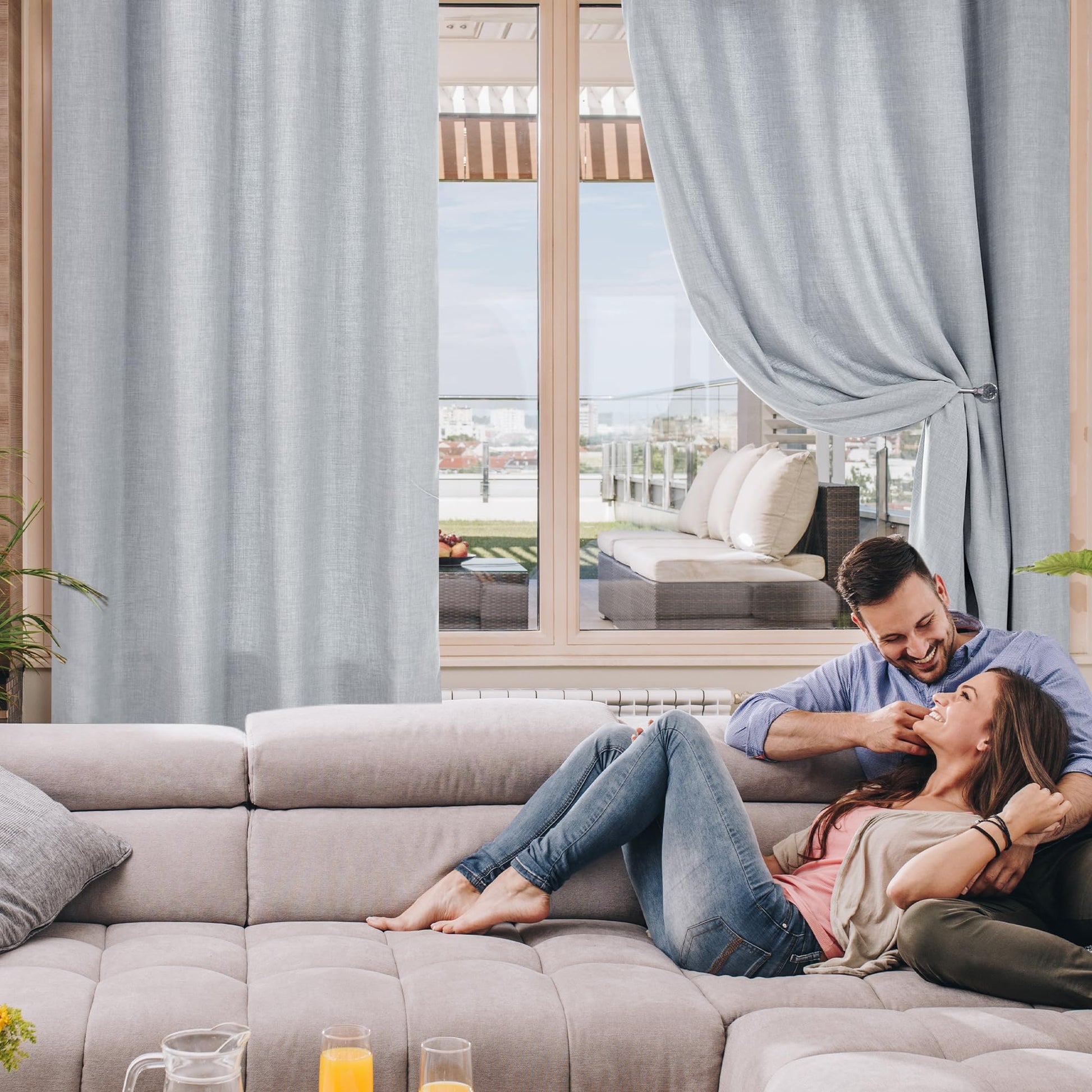 Lightweight faux linen fabric with TPU backing adds sophistication to any living area. The rubbery backing offers durability and privacy, blocking enough light while allowing natural light to filter softly. -