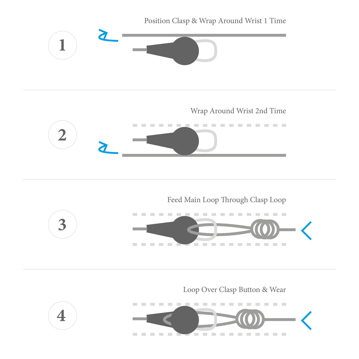 This bracelet is one size fits all, with the leather able to extend or tighten to suit your wrist size. To take the bracelet on or off your wrist, simply slide the one adjustable knot around the leather to make the loop size smaller or larger, and once set, keep the loop size consistent and continue wearing by easily unhooking the loop over the clasp. As pictured, the bracelet is most secure when the leather loop is fed through the smaller loop that emerges beyond the clasp.