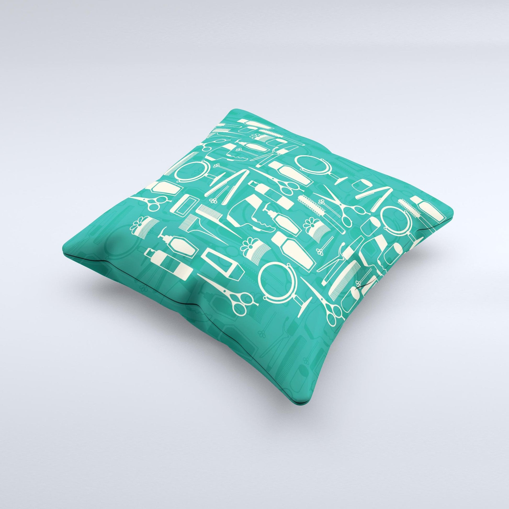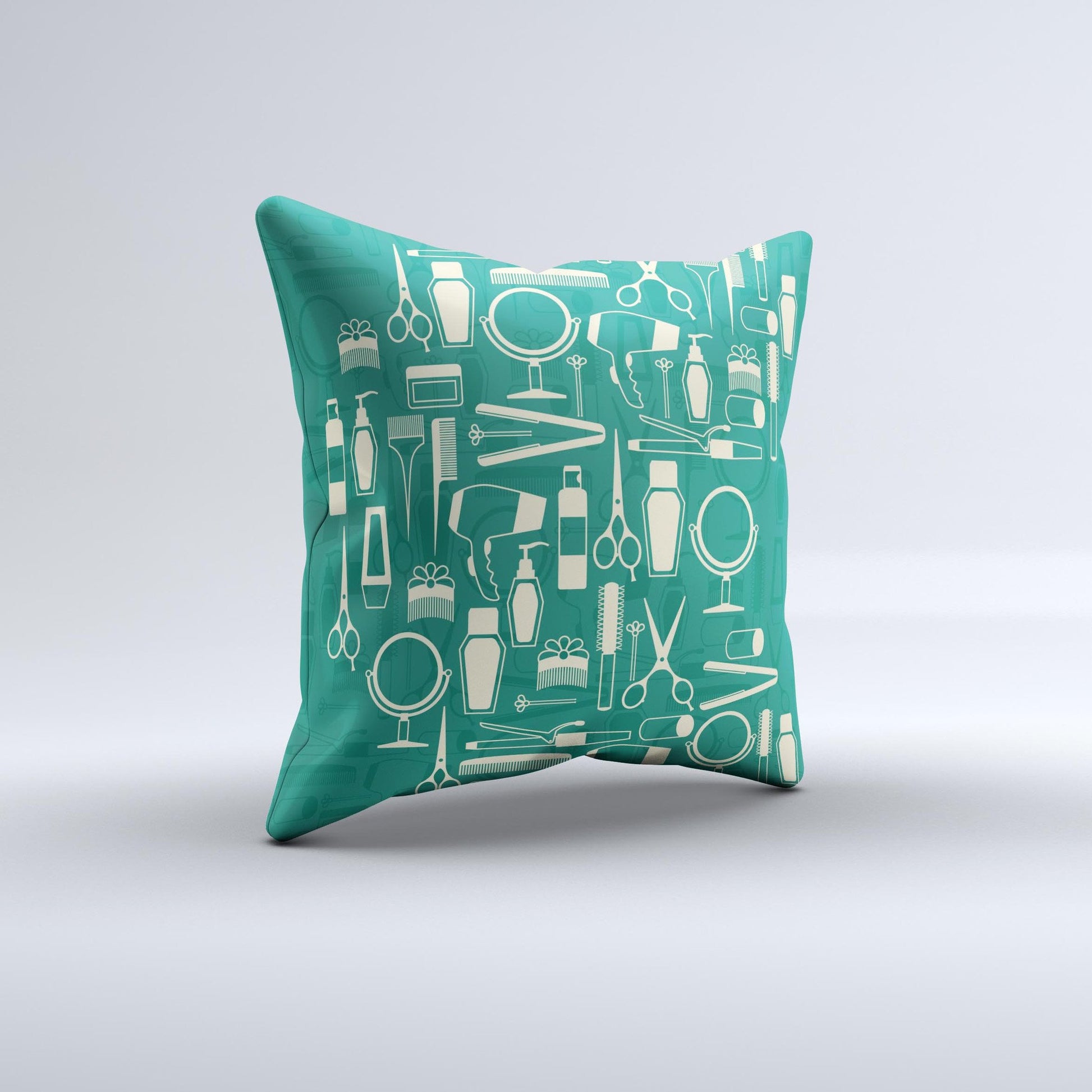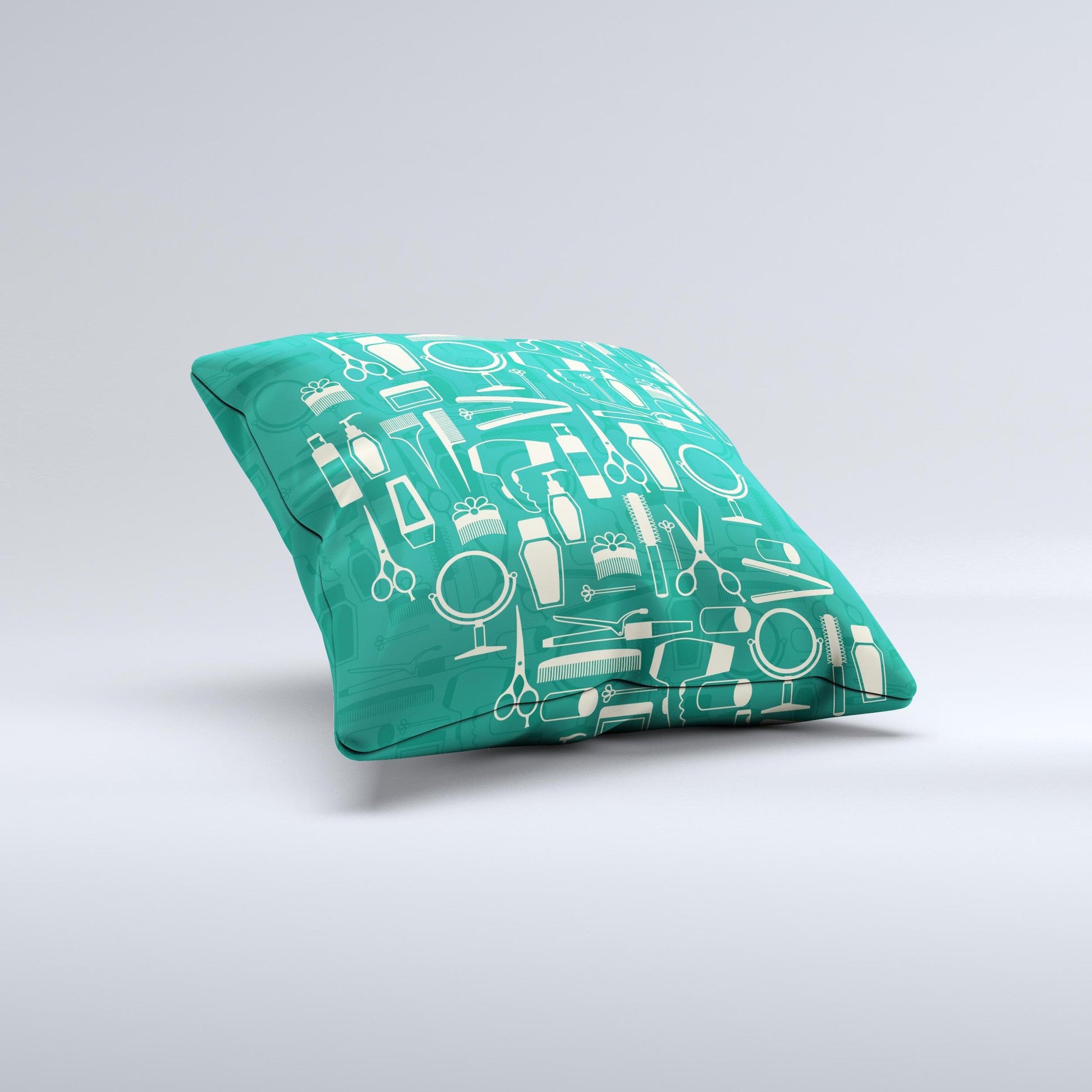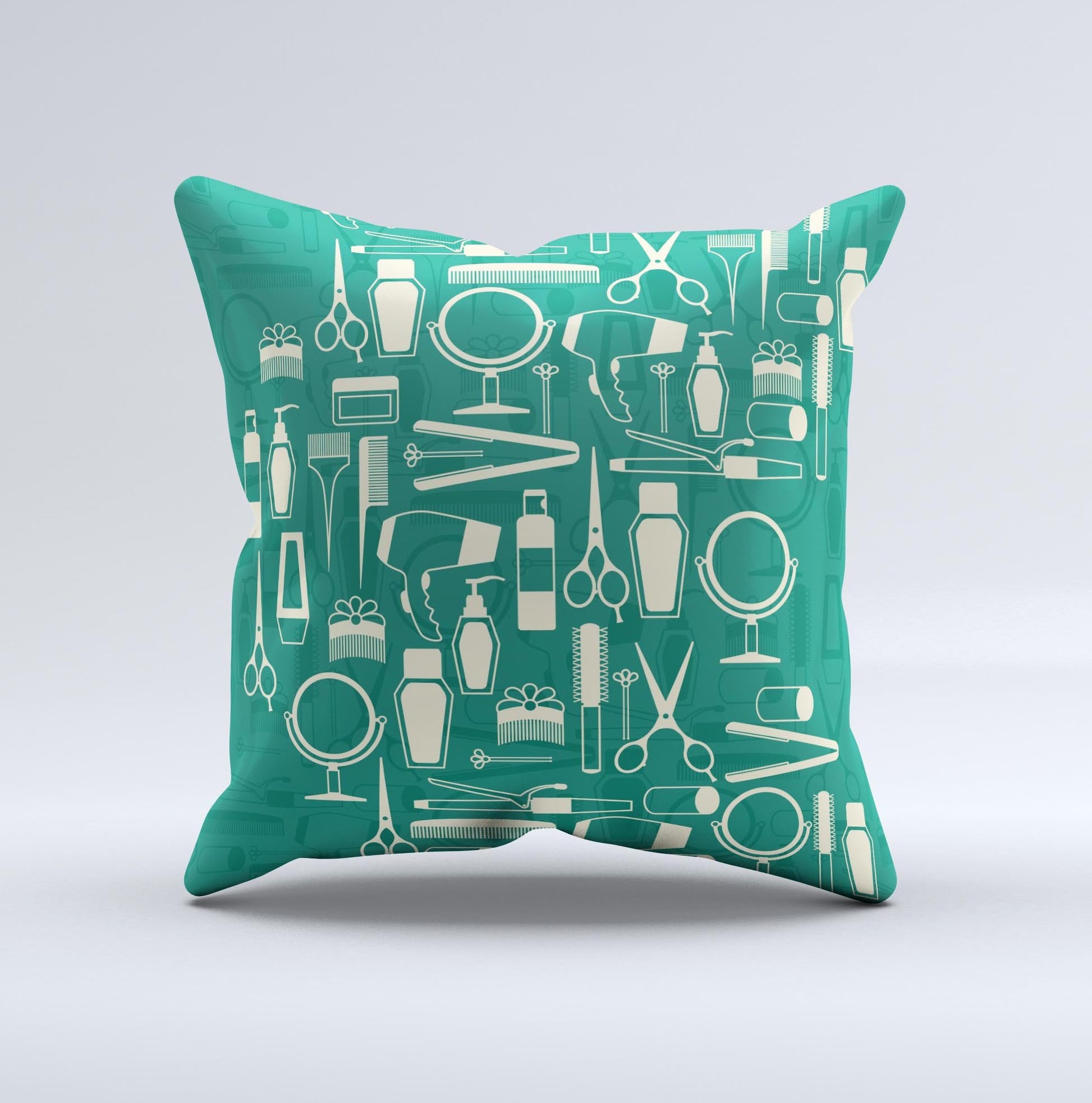 Teal and Yellow Beauty Product Icons ink-Fuzed Decorative Throw Pillow
