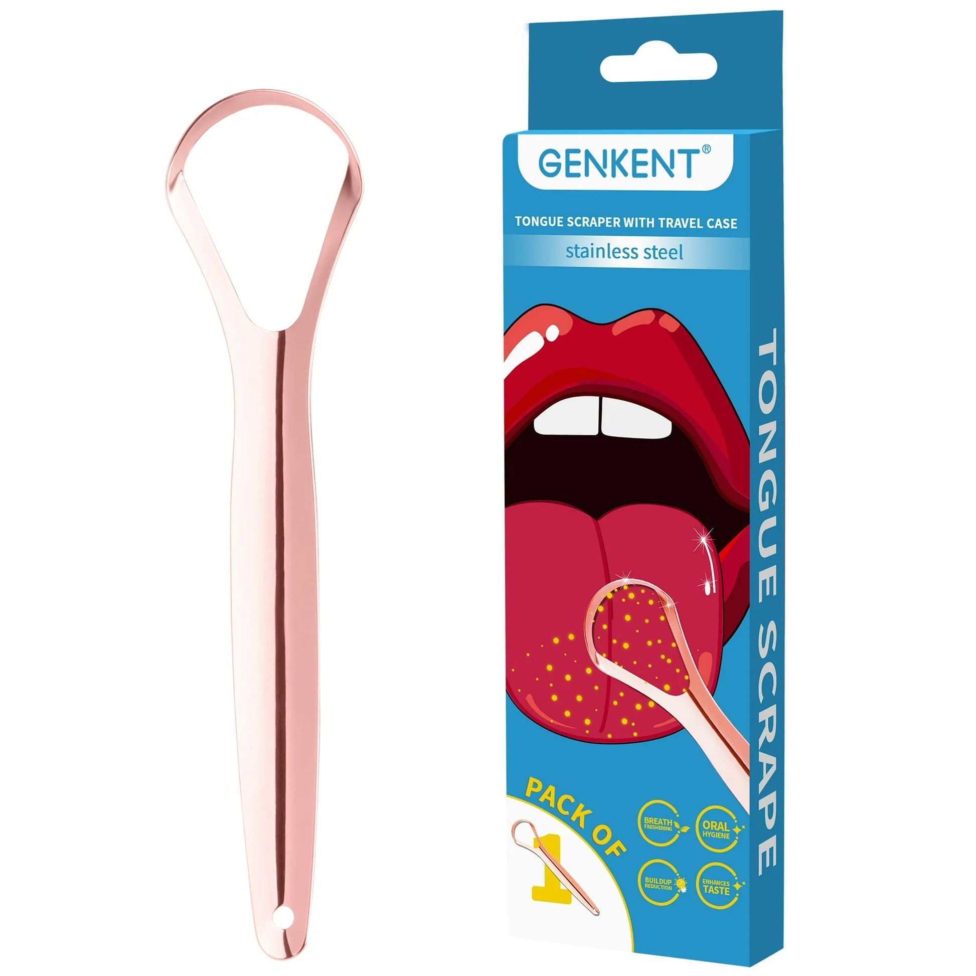 This type of tongue scraper is an essential tool for your oral care routine. This tongue cleaner is made of 100% stainless steel material, easy to clean and sterilize. With its compact design and included case, it's perfect for travel and on-the-go use. Say goodbye to bad breath with its effective cleaning power. It is available in silver and gold colors, making it easy for family members to distinguish their own unique tongue scraper. Enhance your taste buds with our tongue scraper, and its cleaning power will leave your mouth feeling cleaner than ever.